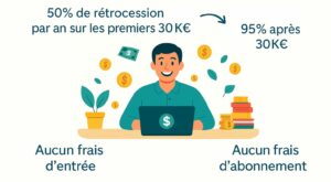 - 50% puis 95 % de rétrocession au-delà de 30K€ de CA annuel